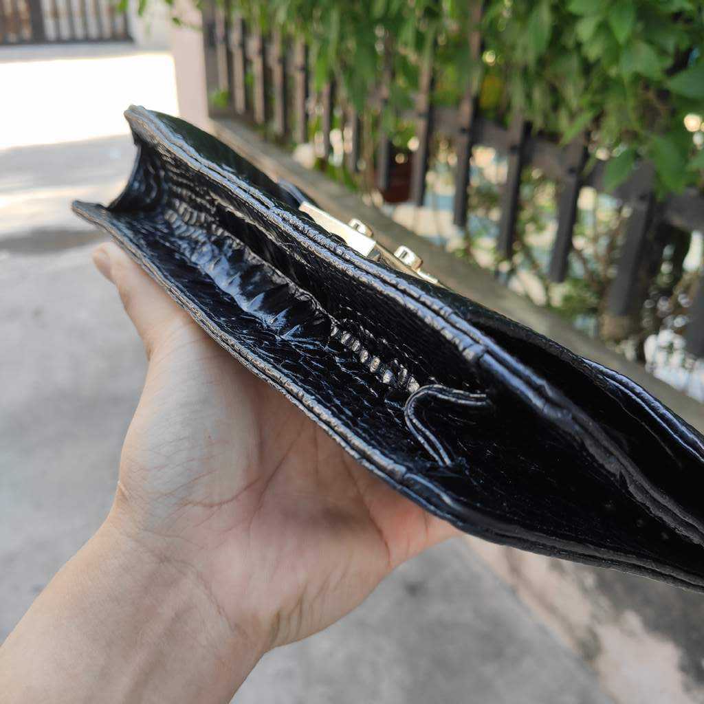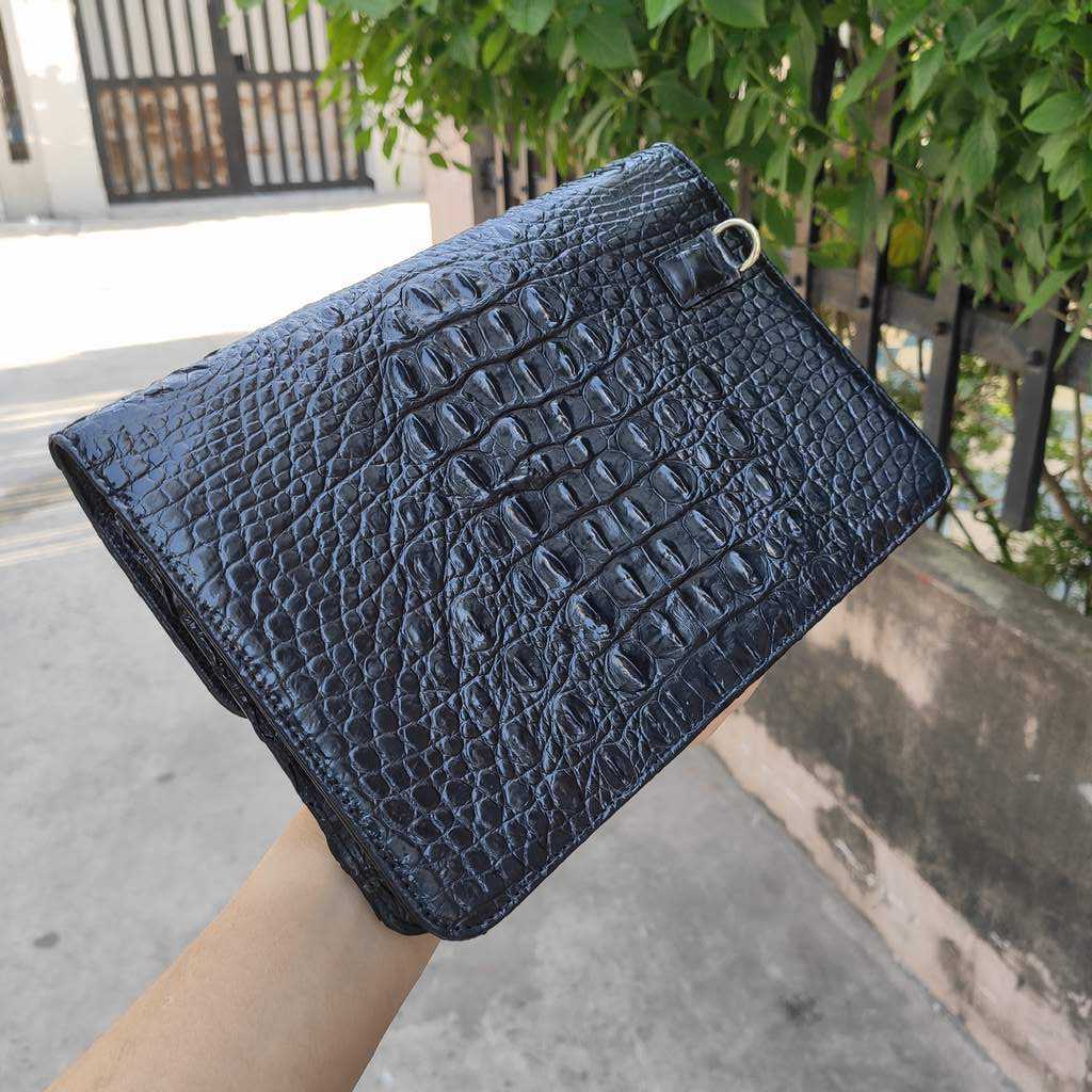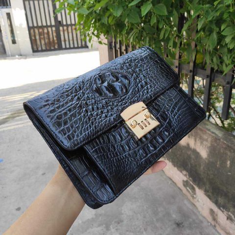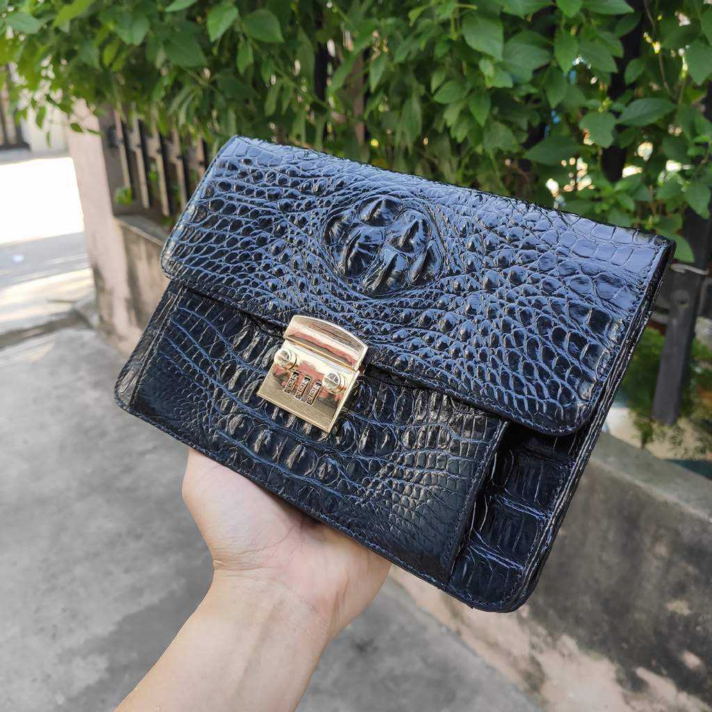 Cặp được làm liền mạch nguyên tấm da cá sấu lớn rất đẹp và chắc chắn. Trang bị khóa số bảo mật tuyệt đối!