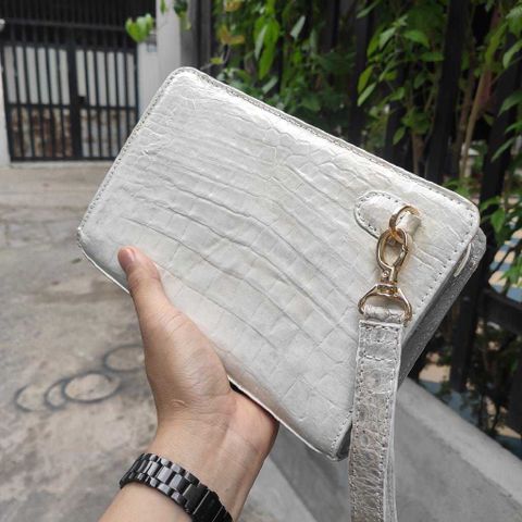 Clutch KHÓA SỐ da bụng cá sấu bạch tạng [THIẾT KẾ MỚI]