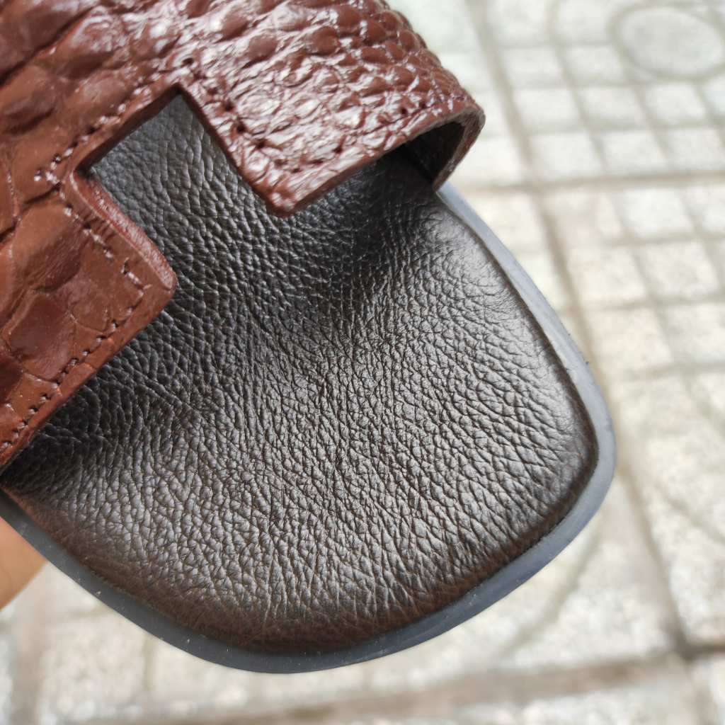 Mặt trên quai đép được làm từ da cá sấu 100%