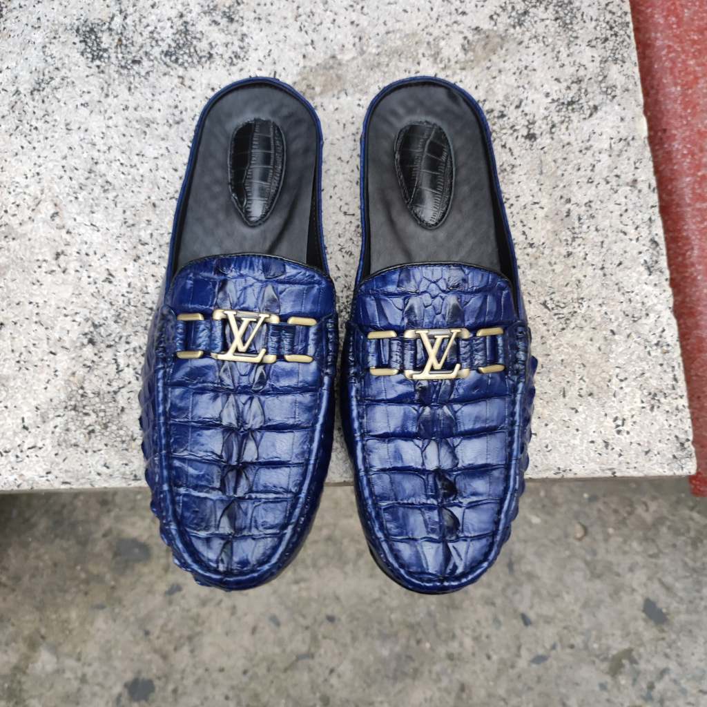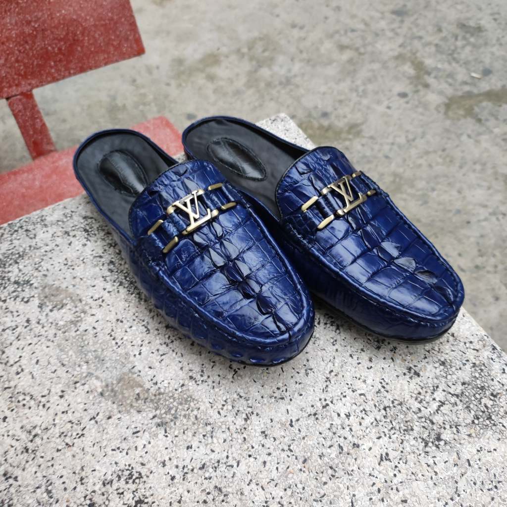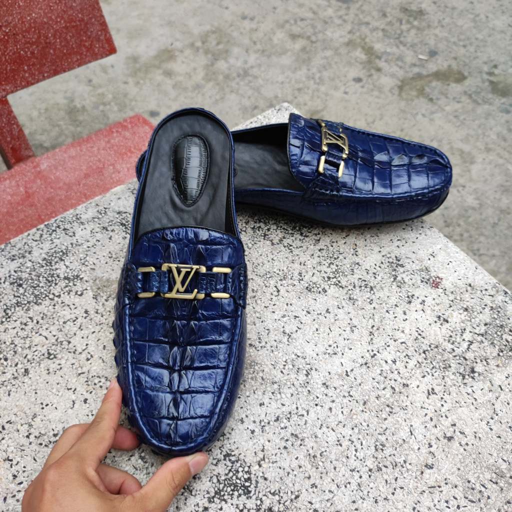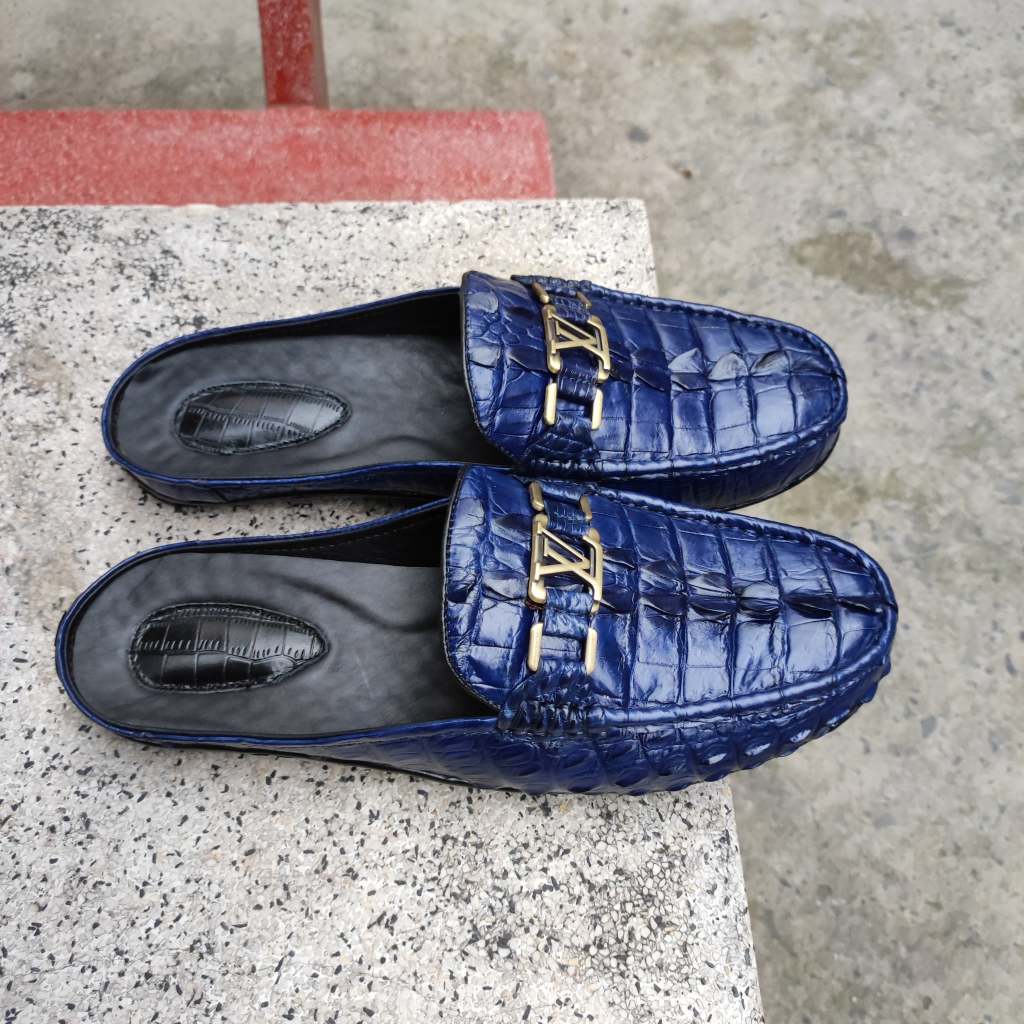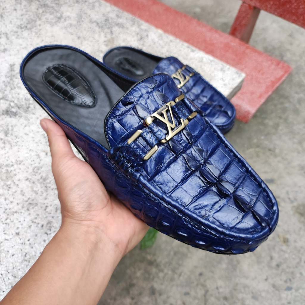 GIÀY SỤC NAM VÂY ĐUÔI CÁ SẤU XANH NAVY