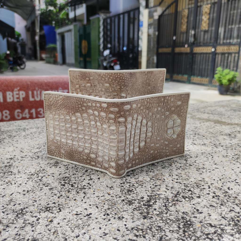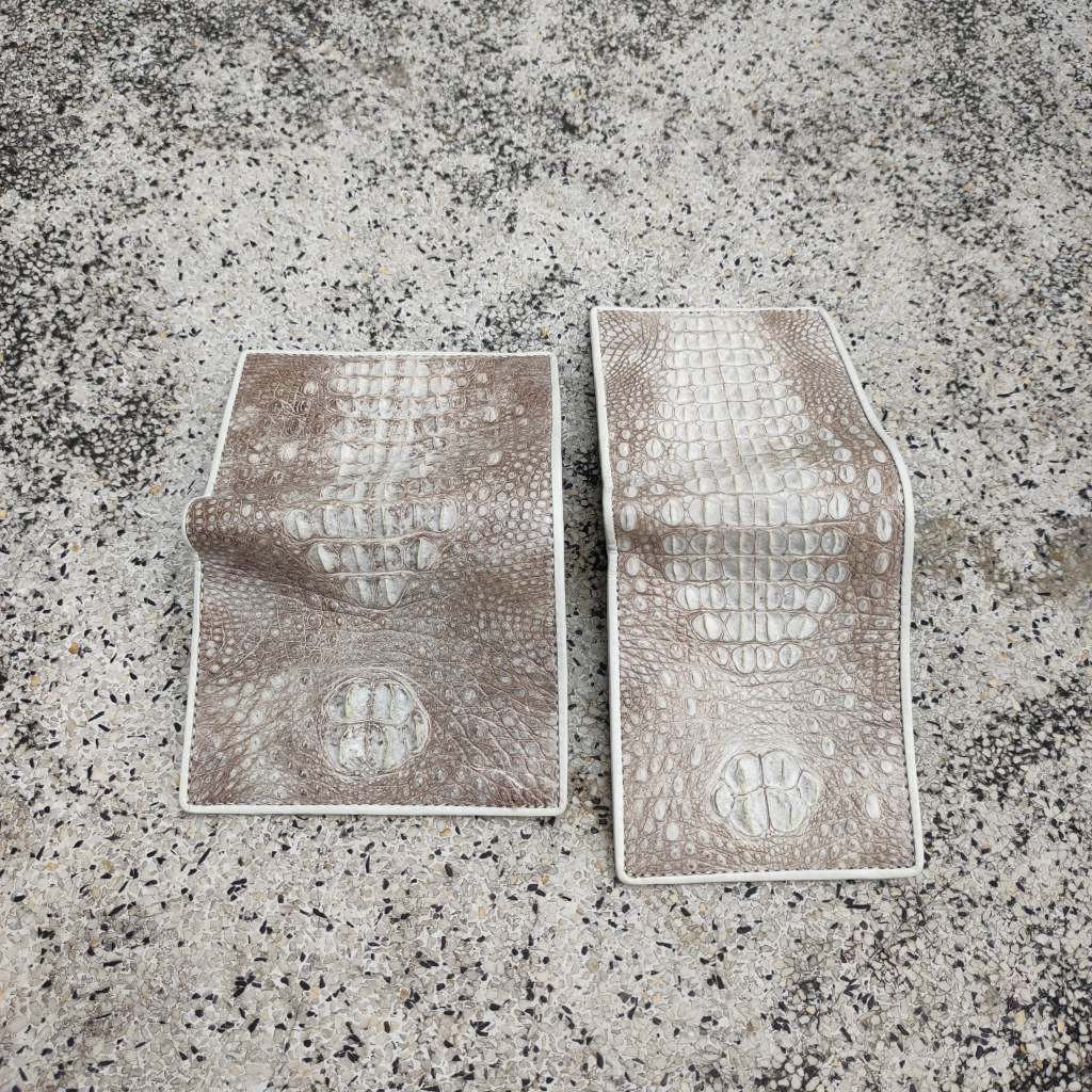 - Mẫu ví VS202N bạn đang xem được làm từ gù xuống lưng của cá sấu nguyên con nhỏ, những cái gù nhô lên ở mặt trước và những hàng gai lưng chạy song song ở mặt sau của ví đang hình thành xương của cá sấu. Nên nếu dùng ngón tay ấn vào gù và gai lưng sẽ thấy rất cứng vì đó là xương cá. Còn nếu là hàng da bò dập vân cá sấu/giả da cá sấu thì những cái gù và hàng gai lưng được khuôn tạo hình dập lên từ da bò (bản chất vẫn là da không phải là xương) nên sẽ mềm, ấn vào có độ nún chứ không chắc chắn.