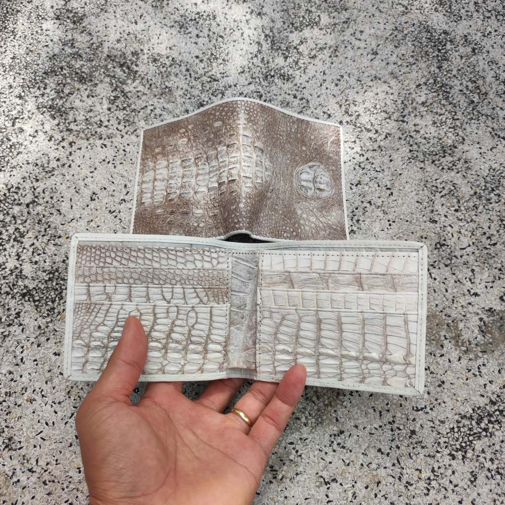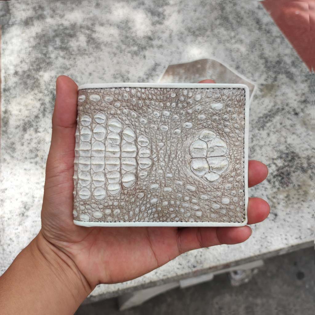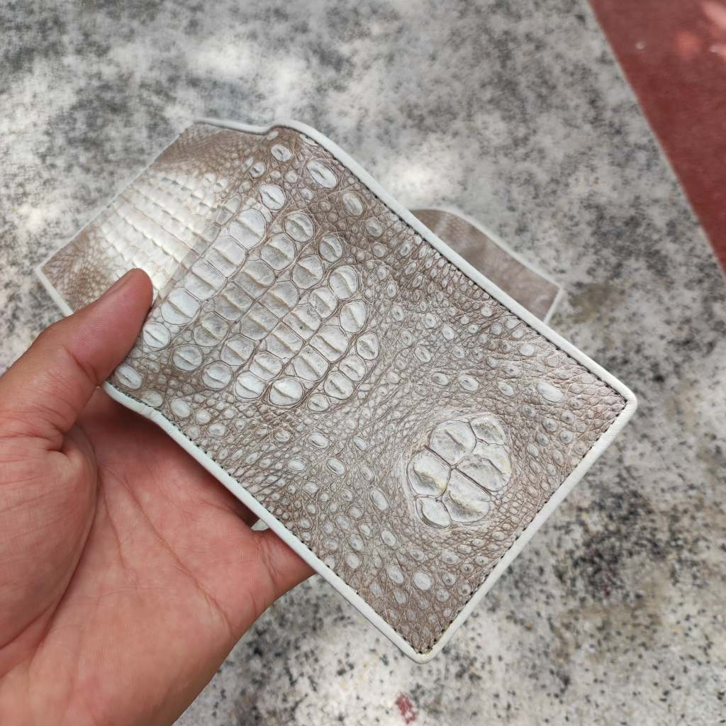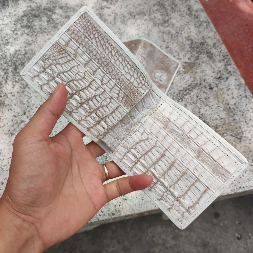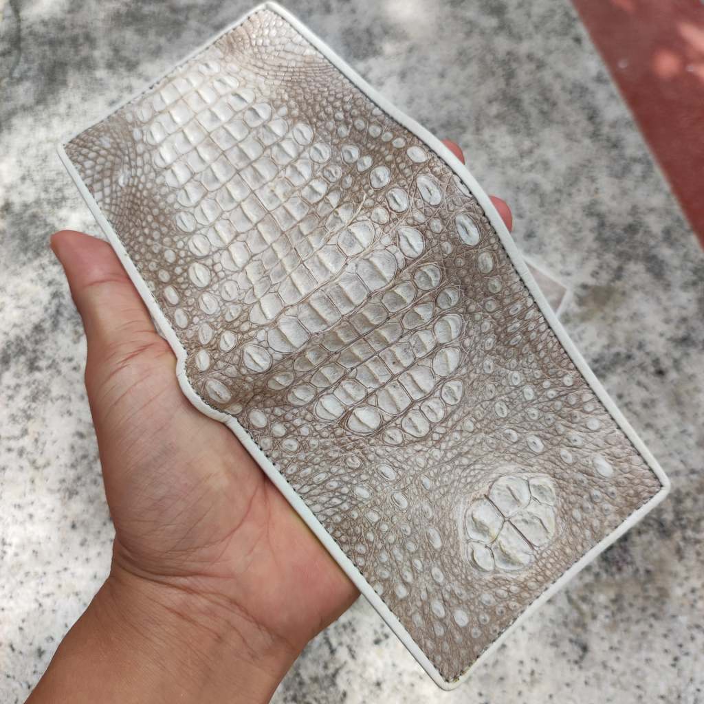 - Vậy cơ bản là dùng ngón tay ấn vào gù và hàng gai lưng trên bề mặt ví. Nếu cứng và chắn chắn sẽ là cá sấu thật, còn mềm sẽ là hàng da bò dập vân cá sấu/giả da cá sấu. Với cá sấu thật, gù và gai càng lớn thì xương càng cứng