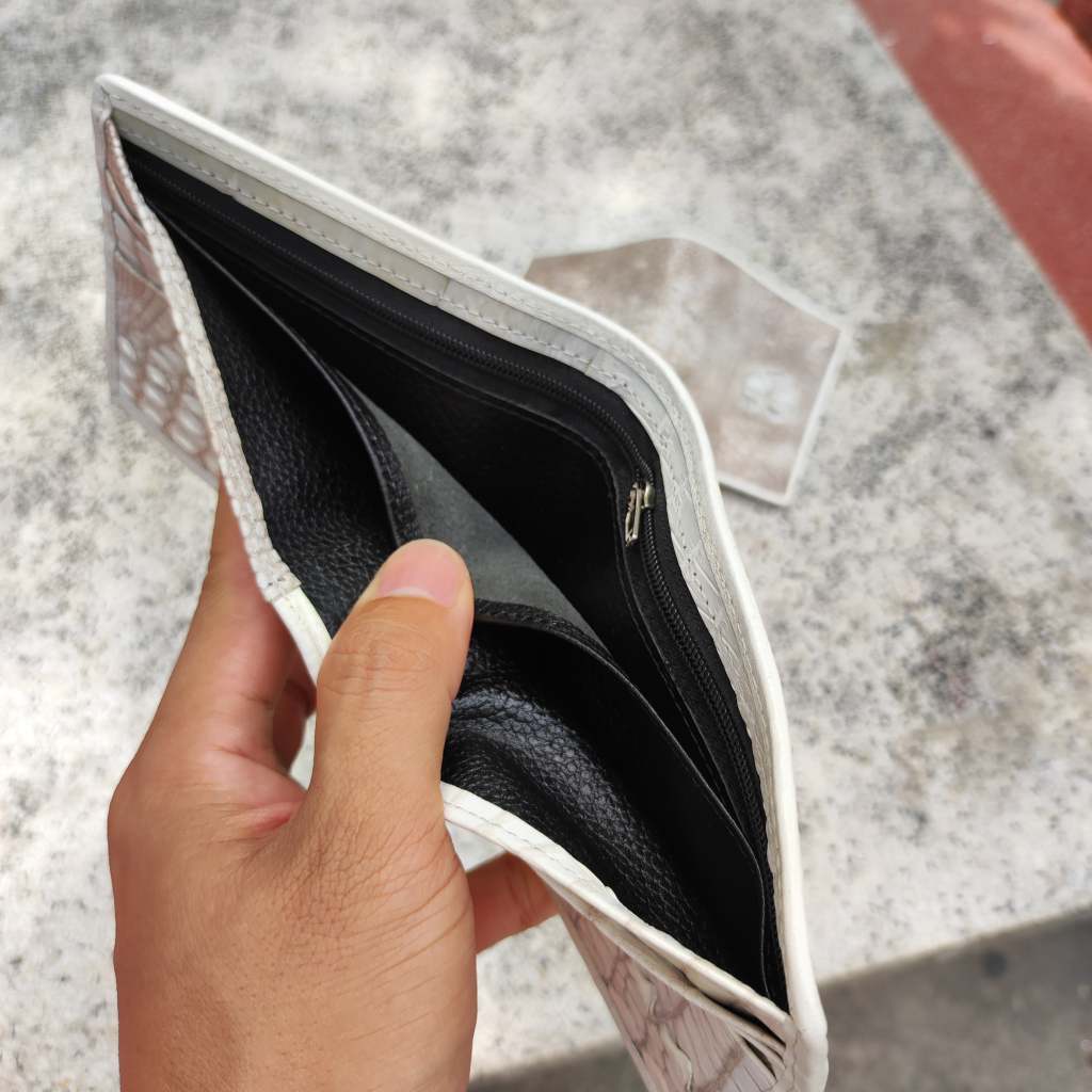 Bộ sản phẩm bao gồm: Ví cá sấu cao cấp + Hộp sang trọng + Thẻ bảo hành bởi Ovenis