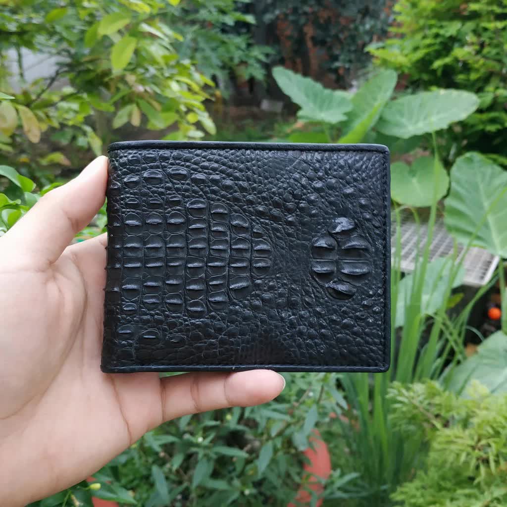 - Mã ví VS102D bạn đang xem được làm từ gù xuống lưng của cá sấu nguyên con nhỏ, những cái gù nhô lên ở mặt trước và những hàng gai lưng chạy song song ở mặt sau của ví đang hình thành xương của cá sấu. Nên nếu dùng ngón tay ấn vào gù và gai lưng sẽ thấy rất cứng vì đó là xương cá. Còn nếu là hàng da bò dập vân cá sấu/giả da cá sấu thì những cái gù và hàng gai lưng được khuôn tạo hình dập lên từ da bò (bản chất vẫn là da không phải là xương) nên sẽ mềm, ấn vào có độ nún chứ không chắc chắn.