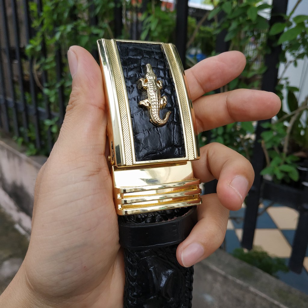 Video thực tế Thắt Lưng Da Cá Sấu Liền Nguyên Con 4cm