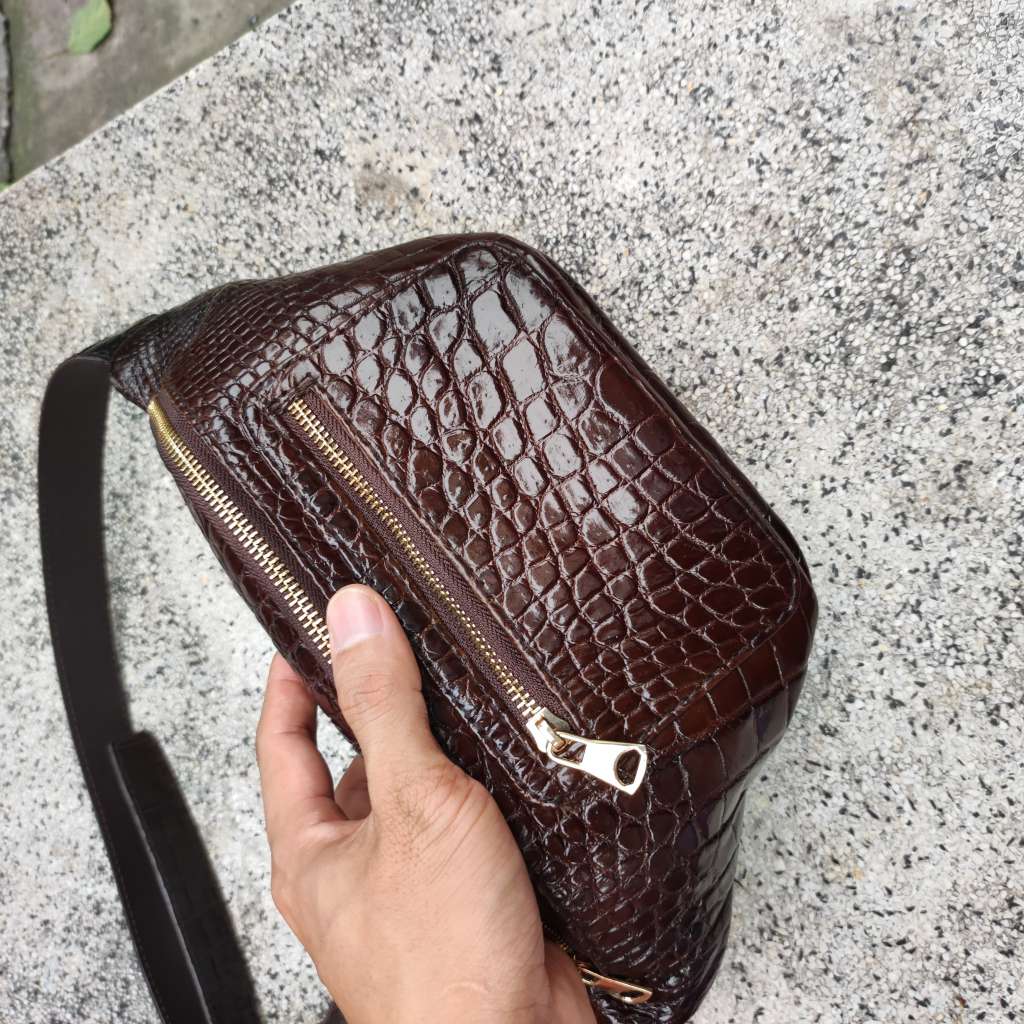 Túi đeo bụng Da cá sấu trơn Phiên bản màu nâu! KHUYỄN MÃI - ƯU ĐÃI