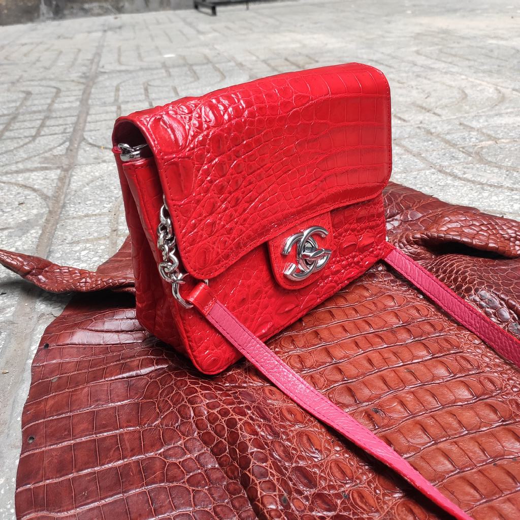 Túi được làm liền mạch nguyên tấm da Bụng hông cá sấu có hạt nổi nhẹ đẹp tinh tế
