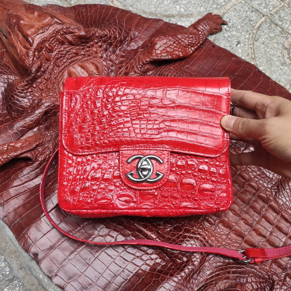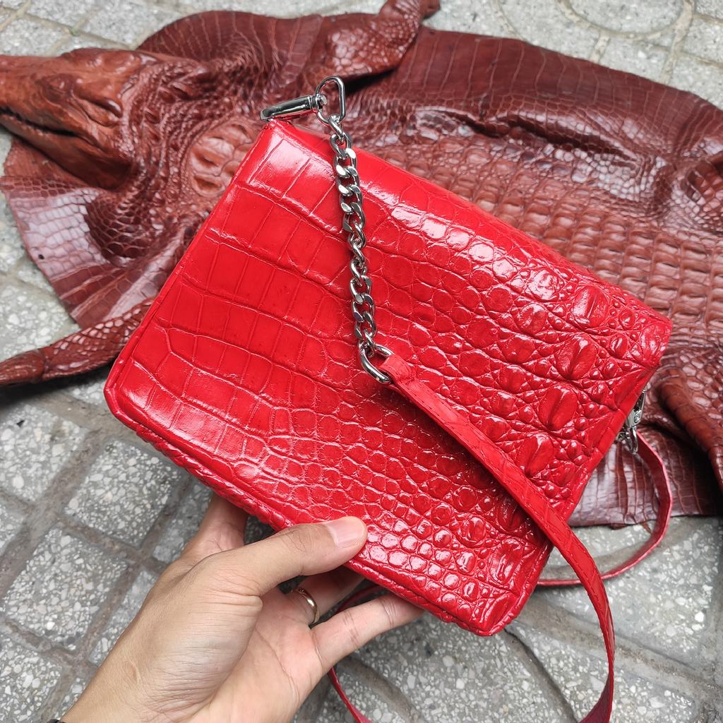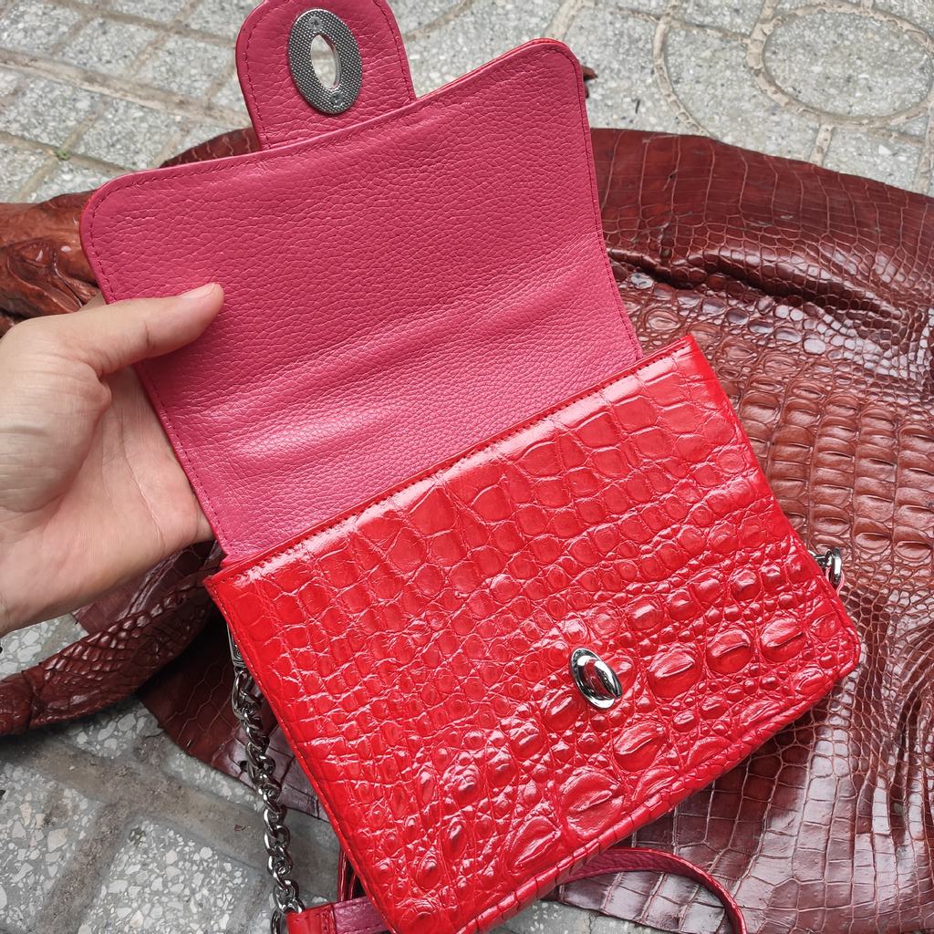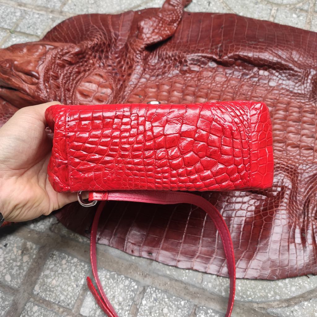 VIDEO TÚI ĐEO NỮ DA CÁ SẤU MÀU ĐỎ ĐẸP NỔI BẬT