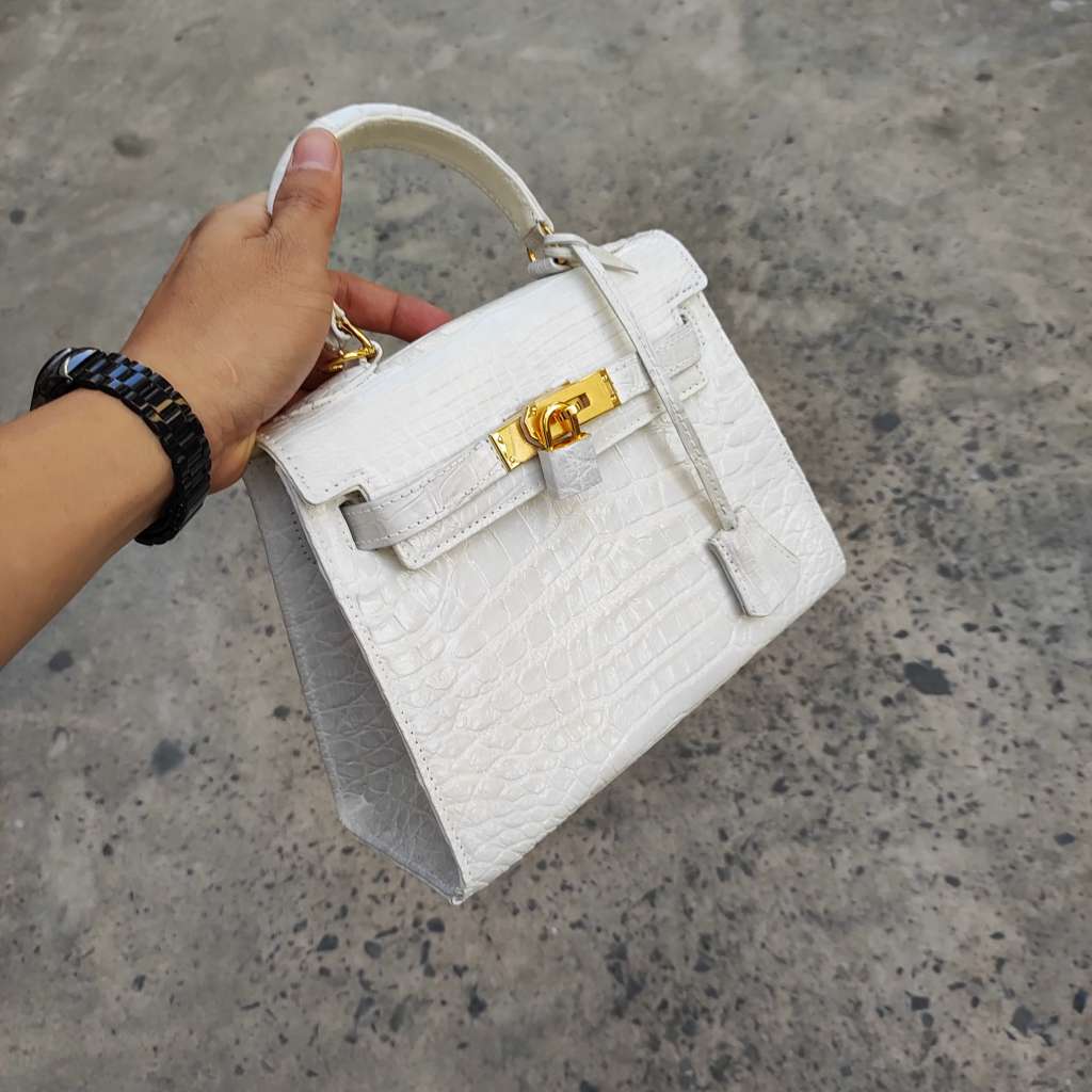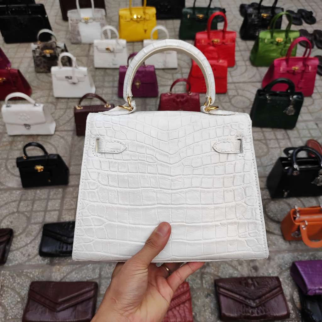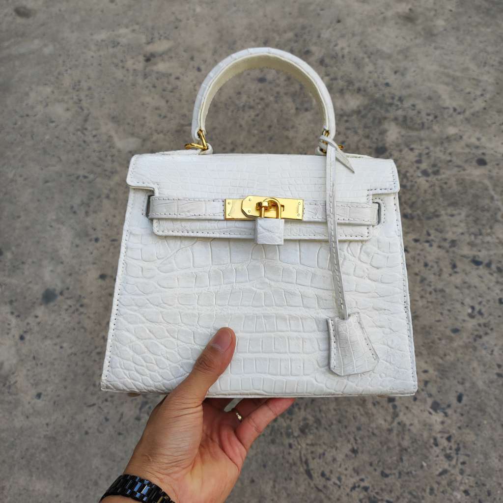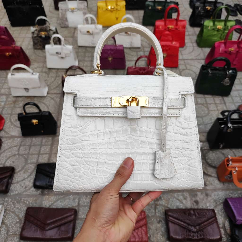 Da bụng cá sấu có vân nhẹ nhàng kết hợp màu trắng đẹp nữ tính!