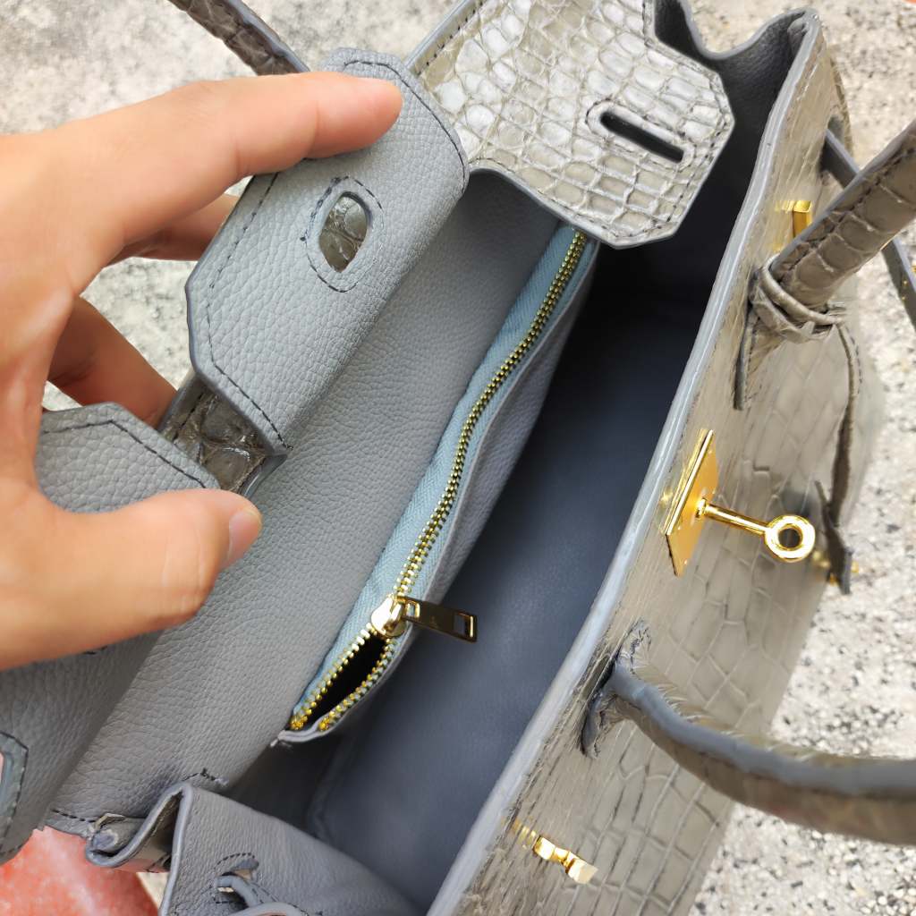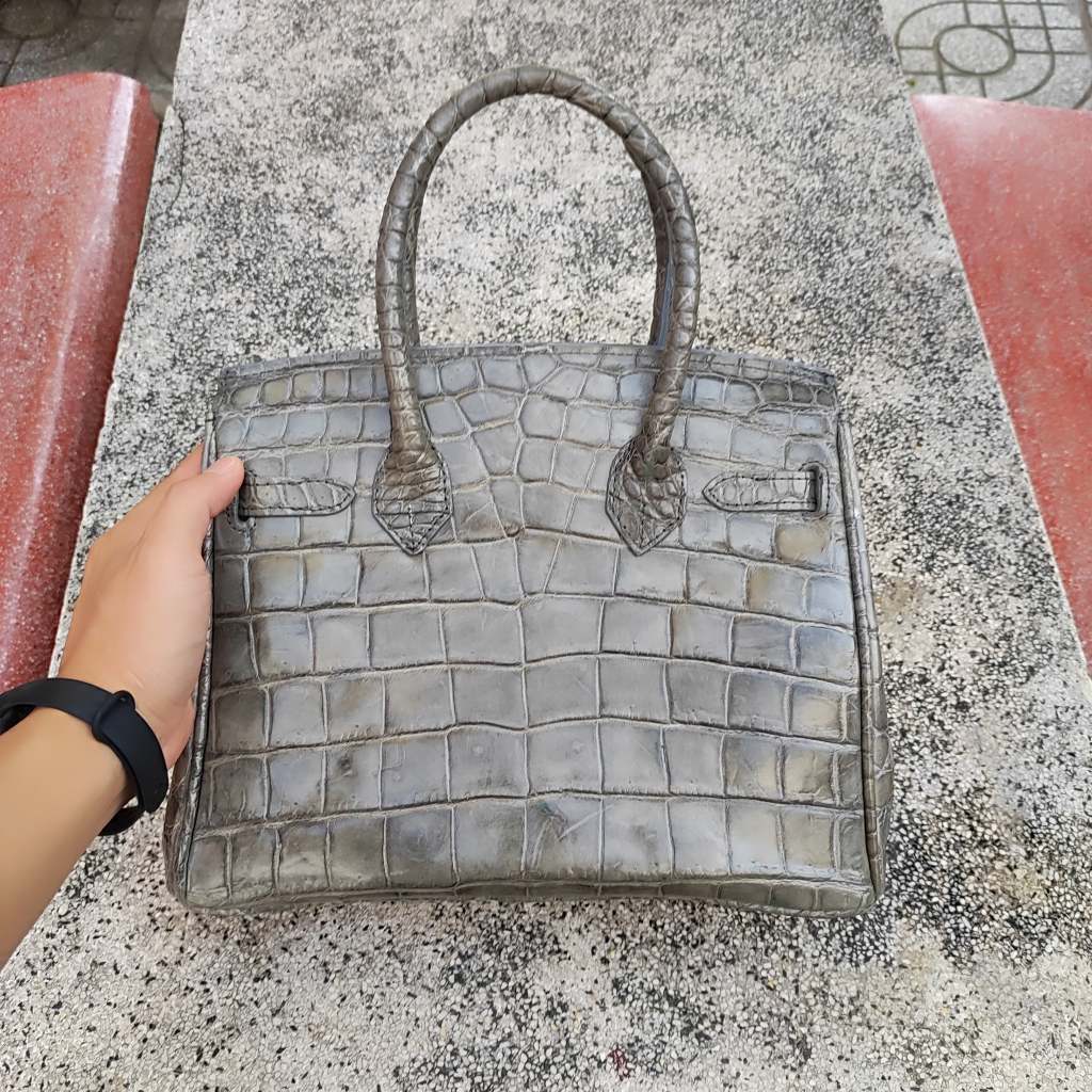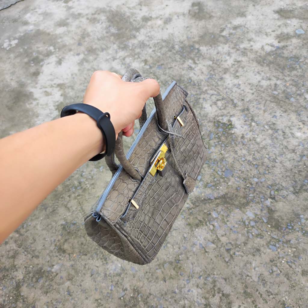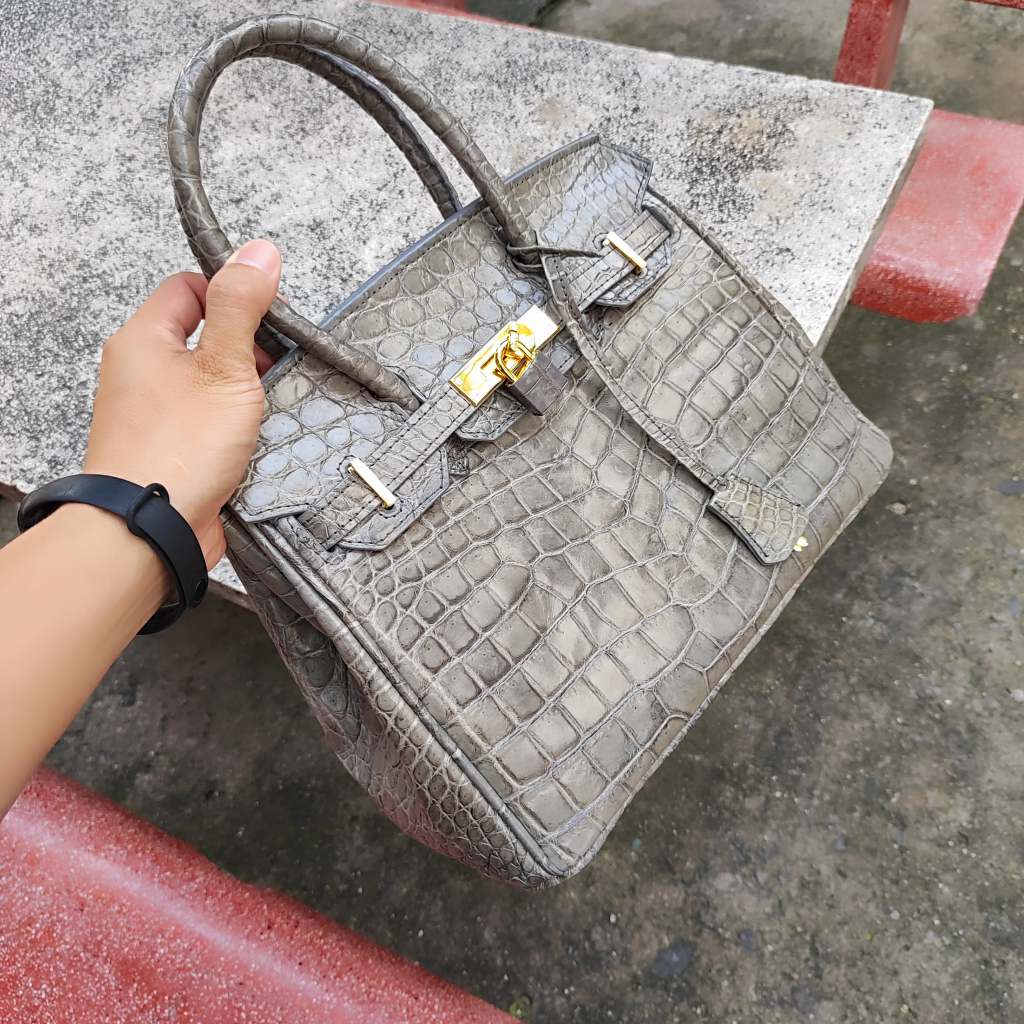 Túi xách cá sấu nữ màu Xám tro đẹp khó cưỡng. Size lớn 30cm!