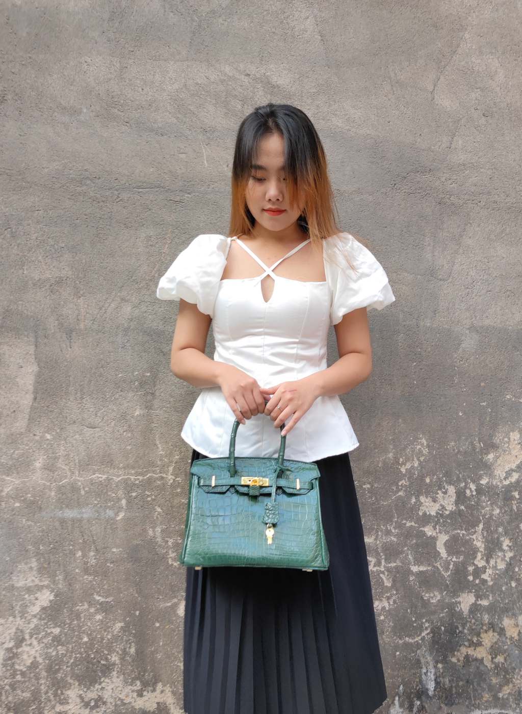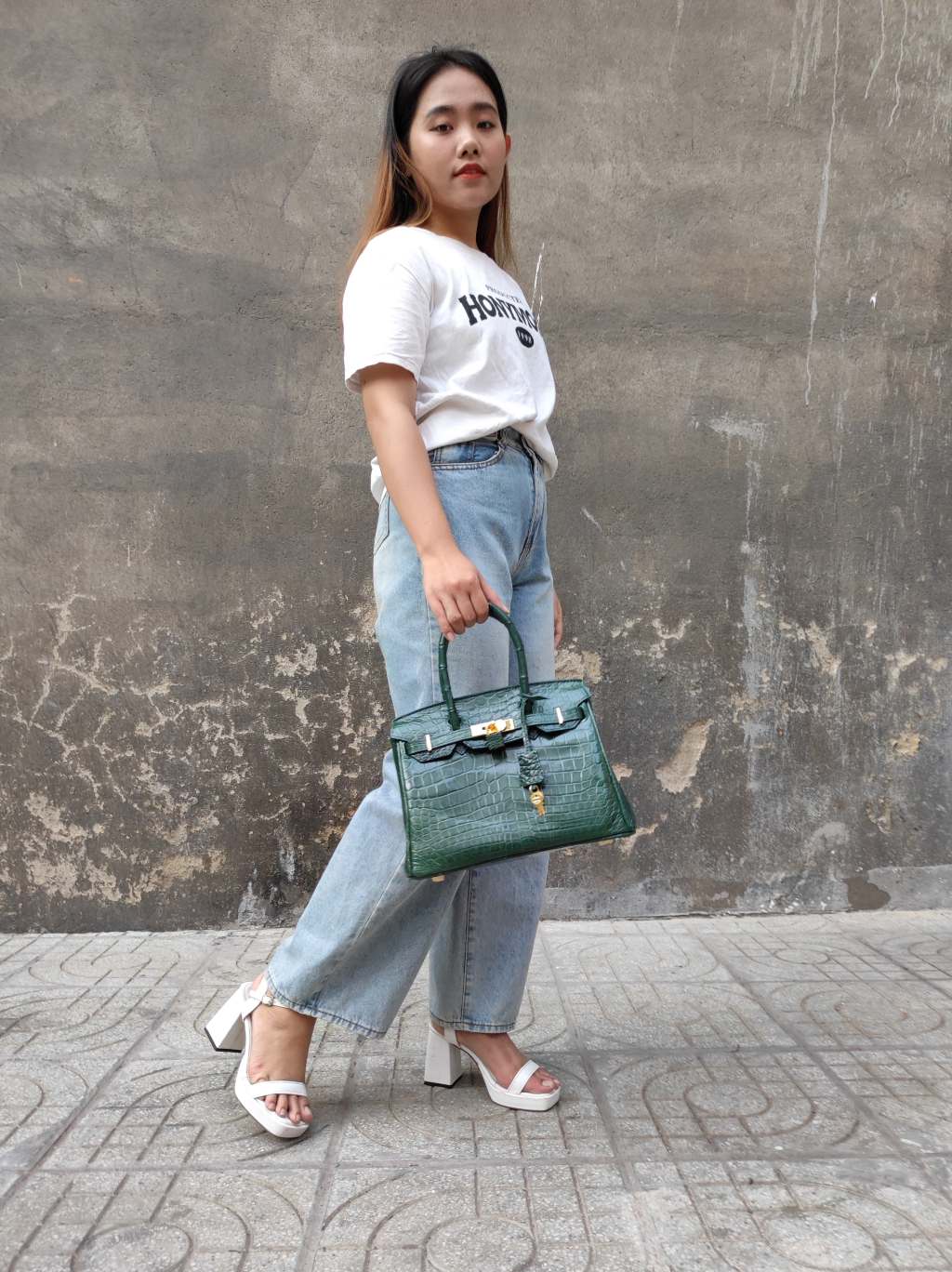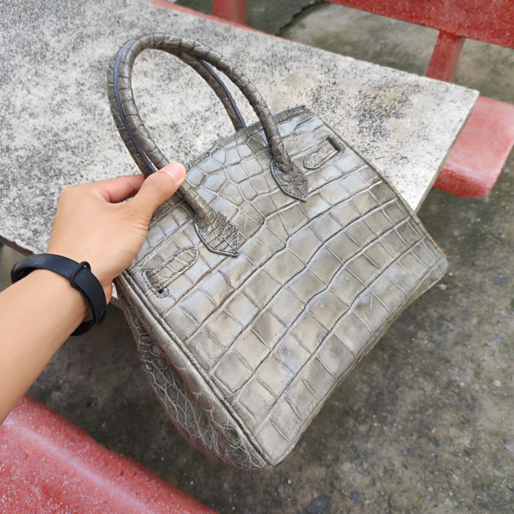 Túi xách cá sấu nữ màu Xám tro đẹp khó cưỡng. Size lớn 30cm!