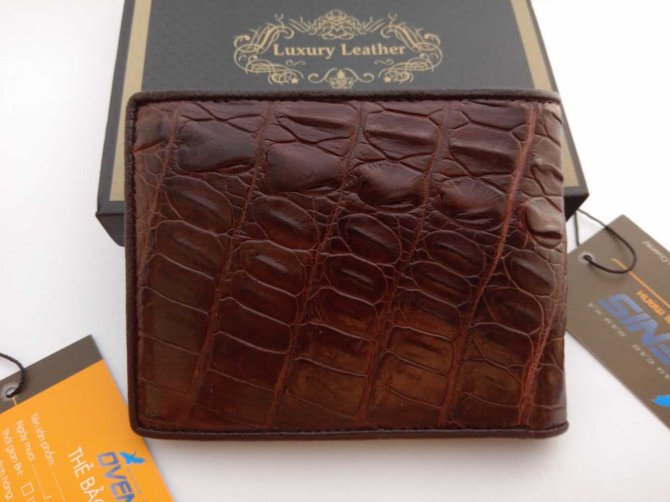 Bộ sản phẩm bao gồm: Ví cá sấu cao cấp + Hộp sang trọng + Thẻ bảo hành bởi Ovenis