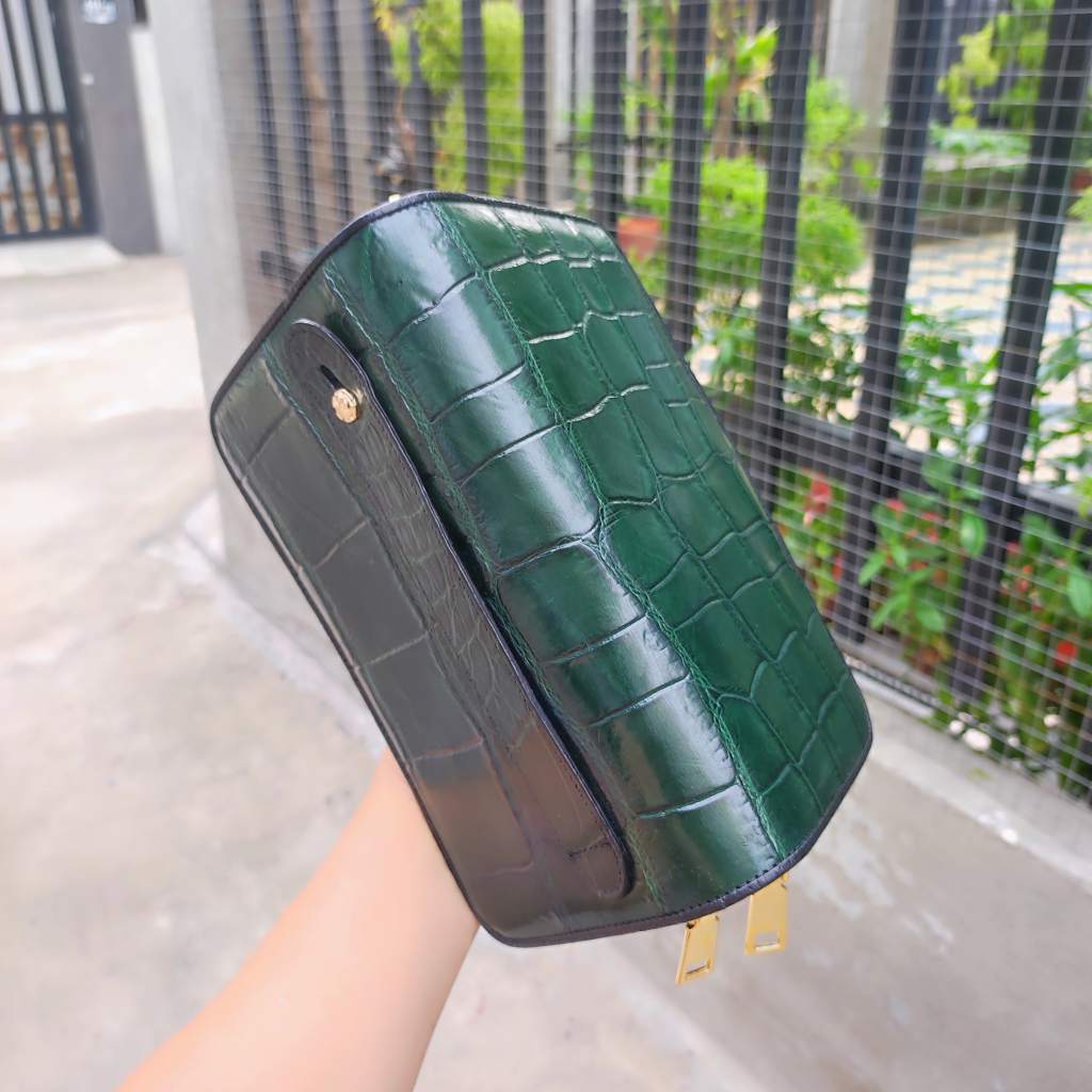 Video VÍ CẦM TAY DA BỤNG CÁ SẤU 2 KHUÔN MÀU XANH RÊU